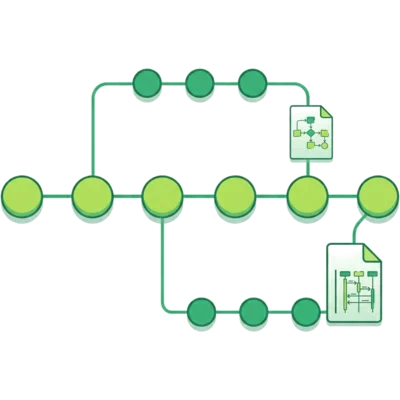 Diagram source is plain text. It diffs, merges, and lives in your Git history alongside the code it documents. Review diagram changes in a pull request just like code.